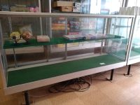 | 詳細 | 廃業に伴うリユース商品です。 ガラス製のショーケース 3台 ①横151×奥行45×高さ91cm が2台 ②横90×奥行47×高さ95cm が1台 使用年数は約40年。商品展示用として使用していました。緑のマットは取り外せます。1台からの引き取り可能です。 |