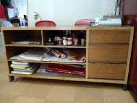 | 詳細 | 廃業に伴うリユース商品です。 写真は現在使用中のため、靴が入っています。リユースは下駄箱のみです。 横134×幅45×高さ130cm 使用年数約30年。 |