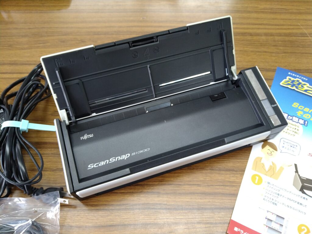 | 詳細 | コンパクトなスキャナーです。 2年ほど使用していました。セットアップ用CD、ケーブル等すべて揃っています。PCへソフトをインストールしてご利用ください。Windows10対応です。最新ドライバーは公式サイトよりダウンロードして下さい。 商品:「(株)PFU ScanSnap S1300」 |